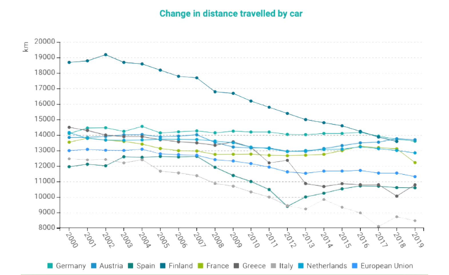 showing a plateau or even decline in the total vehicle miles traveled, suggesting